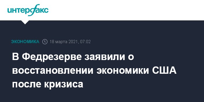 В Федрезерве заявили о восстановлении экономики США после кризиса