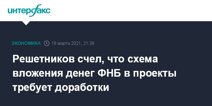 Решетников счел, что схема вложения денег ФНБ в проекты требует доработки