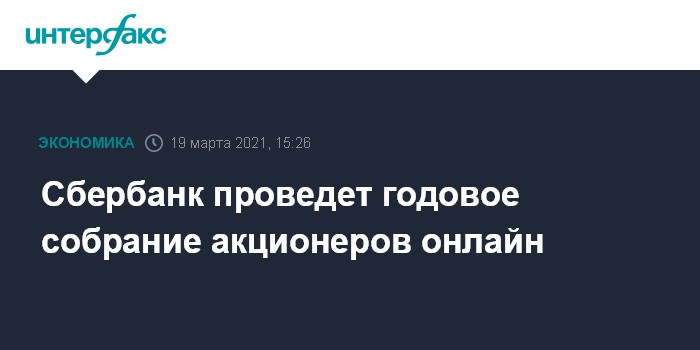 Москва. 19 марта. INTERFAX.RU - Годовое собрание акционеров Сбербанка пройдет 23 апреля в заочном формате видеоконференции, сообщил глава банка Герман Греф.