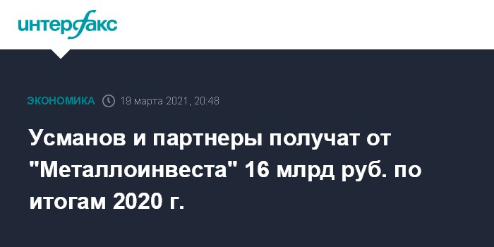 Усманов и партнеры получат от "Металлоинвеста" 16 млрд руб. по итогам 2020 г.