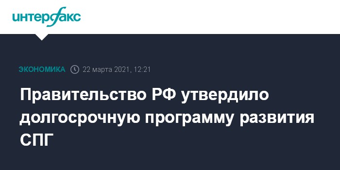 Москва. 22 марта. INTERFAX.RU - Правительство РФ утвердило долгосрочную программу развития крупнотоннажного сжиженного природного газа (СПГ). Об этом заявил премьер-министр Михаил Мишустин на совещании с вице-премьерами.