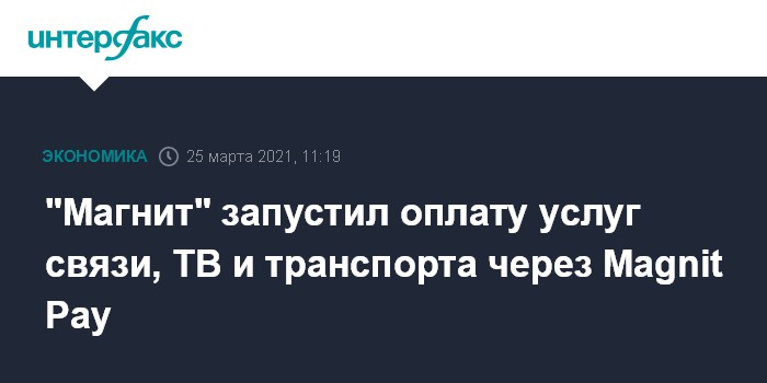 Москва. 25 марта. INTERFAX.RU - Ритейлер "Магнит" добавил в свое приложение услуги платежей за телефон, интернет, телевидение и пополнения транспортных карт.