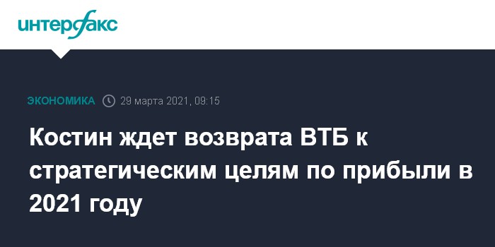 Костин ждет возврата ВТБ к стратегическим целям по прибыли в 2021 году