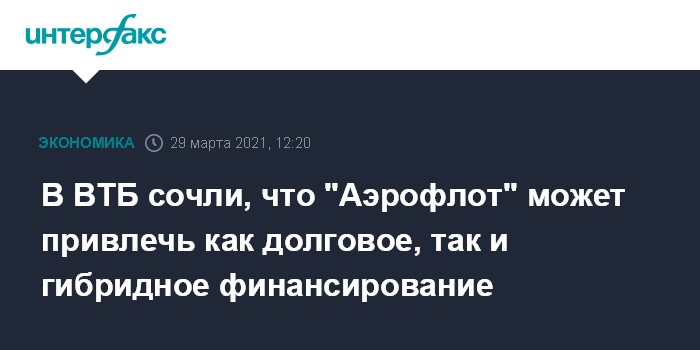 В ВТБ сочли, что "Аэрофлот" может привлечь как долговое, так и гибридное финансирование