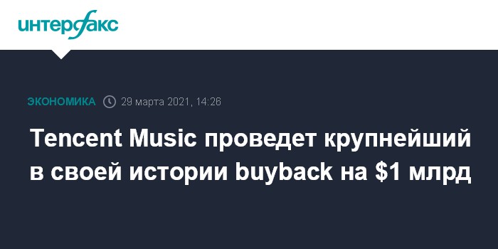 Москва. 29 марта. INTERFAX.RU - Tencent Music Entertainment Group (TME), владеющая крупнейшим в КНР музыкальным стриминговым сервисом, запускает максимальную в своей истории программу buyback объемом $1 млрд.