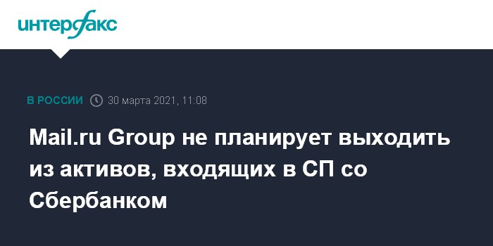 Mail.ru Group не планирует выходить из активов, входящих в СП со Сбербанком