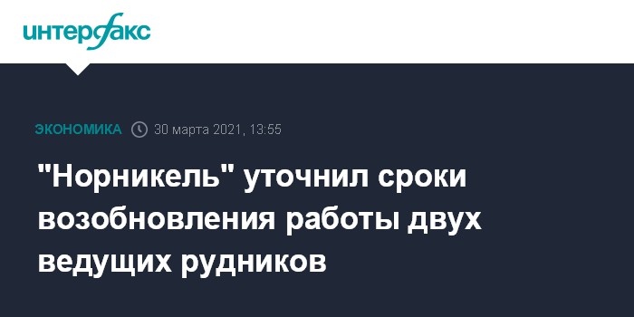 "Норникель" уточнил сроки возобновления работы двух ведущих рудников