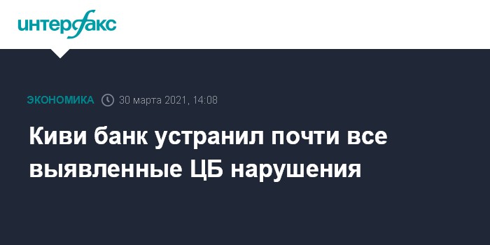 Киви банк устранил почти все выявленные ЦБ нарушения