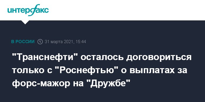 "Транснефти" осталось договориться только с "Роснефтью" о выплатах за форс-мажор на "Дружбе"