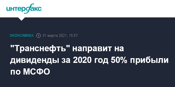"Транснефть" направит на дивиденды за 2020 год 50% прибыли по МСФО