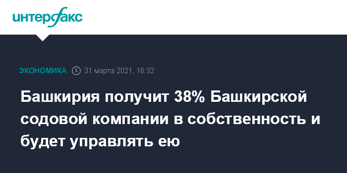Москва. 31 марта. INTERFAX.RU - Башкирия будет управлять "Башкирской содовой компанией" (БСК), акции которой недавно поступили в собственность государства, сообщил президент Владимир Путин на совещании с членами правительства.