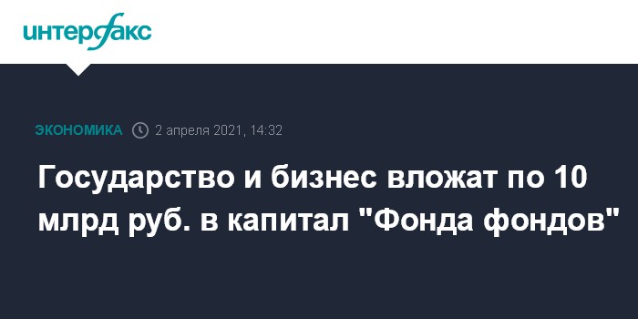 Как уточнили в РФПИ, капитал "Фонда фондов" будет создан государством и частным бизнесом на паритетной основе: 10 млрд рублей инвестиций от государства (через РФПИ) и 10 млрд рублей от бизнеса (10 инвесторов, каждый по 1 млрд рублей).