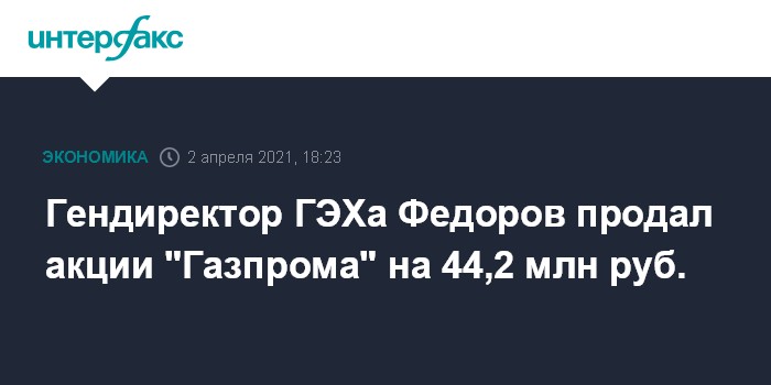 Гендиректор ГЭХа Федоров продал акции "Газпрома" на 44,2 млн руб.
