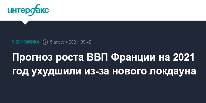 Москва. 5 апреля. INTERFAX.RU - Экономика Франции в 2021 году вырастет меньше, чем ожидалось ранее, в связи с новым четырехнедельным локдауном, введенным в стране для сдерживания распространения коронавируса, предупредил министр финансов Франции Брюно Ле Мэр.