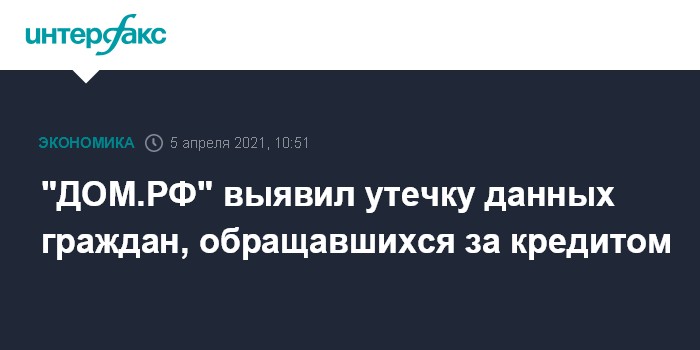 "ДОМ.РФ" выявил утечку данных граждан, обращавшихся за кредитом