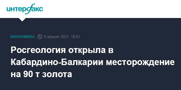 Москва. 5 апреля. INTERFAX.RU - "Росгеология" открыла в пределах Гитче-Тырныаузского рудного поля в Кабардино-Балкарии крупное месторождение золота на 90 тонн, сообщил журналистам глава компании Сергей Горьков.