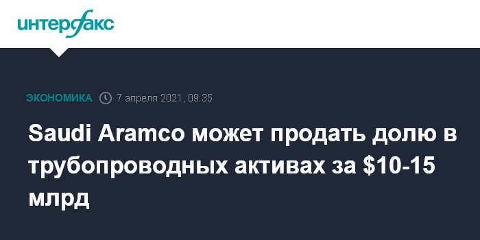 Saudi Aramco может продать долю в трубопроводных активах за $10-15 млрд