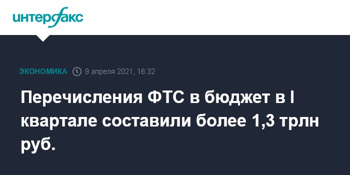 Москва. 9 апреля. INTERFAX.RU - Федеральная таможенная служба (ФТС) РФ за январь-март 2021 года перечислила в федеральный бюджет РФ 1 трлн 329,9 млрд рублей, что на 12% больше, чем за январь-март 2020 года, говорится в сообщении ФТС.