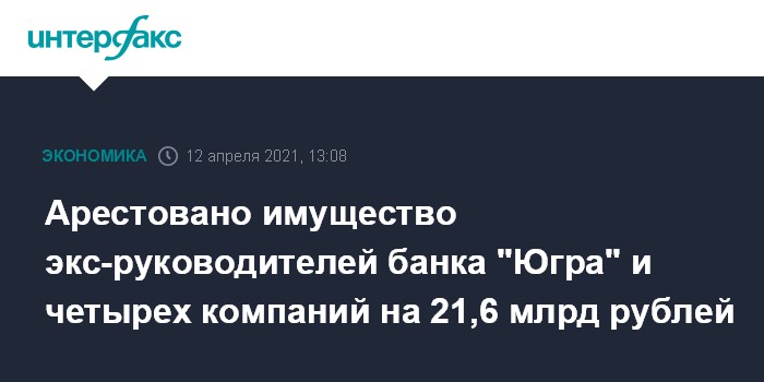 Арестовано имущество экс-руководителей банка "Югра" и четырех компаний на 21,6 млрд рублей