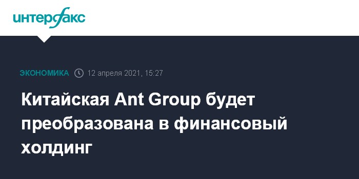 Москва. 12 апреля. INTERFAX.RU - Ant Group Co., крупнейшая в Китае компания сферы финансовых технологий, будет преобразована в финансовый холдинг под давлением властей КНР.