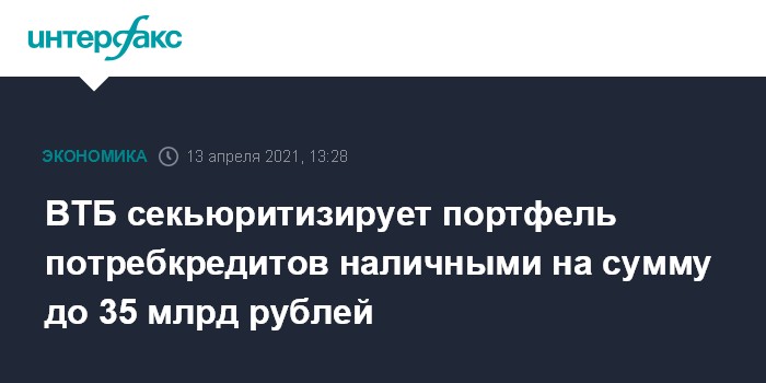 ВТБ секьюритизирует портфель потребкредитов наличными на сумму до 35 млрд рублей