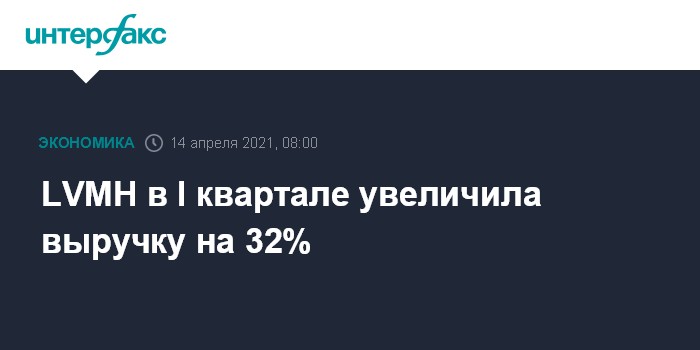 Москва. 14 апреля. INTERFAX.RU - Крупнейший мировой производитель товаров класса "люкс" LVMH Moet Hennessy Louis Vuitton SA в январе-марте увеличил выручку на 32% после нескольких кварталов падения показателя в течение 2020 года.