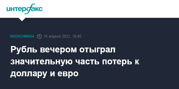 Как отмечают эксперты "Интерфакс-ЦЭА", рубль вечером отыграл значительную часть потерь первой половине дня и лишь немного слабеет к доллару и евро на фоне решения США принять новый пакет антироссийских санкций, так как они уже были учтены в котировках. Указ о санкциях подписал американский президент Джозеф Байден и, кроме того, он объявил о введении режима ЧС в связи со "вредоносными действиями" России и с целью "справиться с этой угрозой".