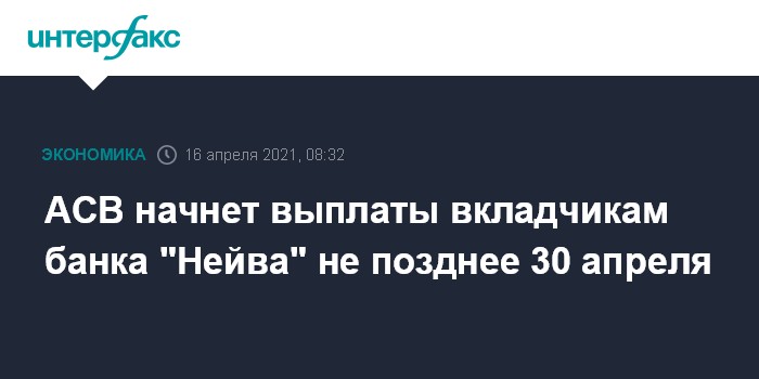 АСВ начнет выплаты вкладчикам банка "Нейва" не позднее 30 апреля