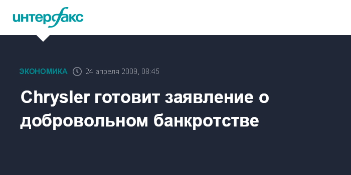 Москва. 24 апреля. INTERFAX.RU - Chrysler LLC, третий крупнейший автопроизводитель США, готовится уже на будущей неделе подать иск в суд с целью защиты от кредиторов, сообщает The Wall Street Journal со ссылкой на свои источники.