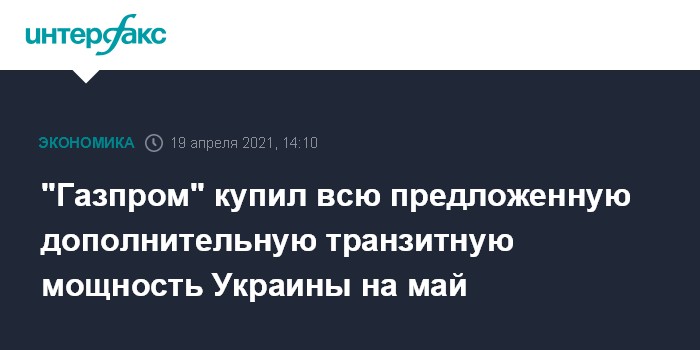 Москва. 19 апреля. INTERFAX.RU - "Газпром" забронировал все предложенные дополнительные транзитные мощности Украины на май, следует из результатов месячного аукциона на Regional Booking Platform.