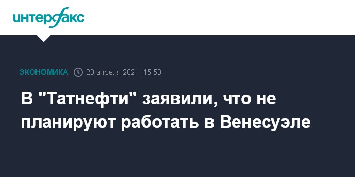 Москва. 20 апреля. INTERFAX.RU - "Татнефть" не планирует работать в Венесуэле, сообщил помощник генерального директора "Татнефти" по корпоративным финансам Василий Мозговой в ходе видеоконференции "Диалог с компанией "Татнефть", организованной ВТБ.