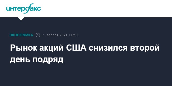 Москва. 21 апреля. INTERFAX.RU - Фондовые индексы США снизились по итогам торгов во вторник, завершив в минусе вторую сессию подряд.