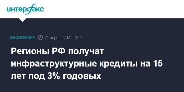 Регионы РФ получат инфраструктурные кредиты на 15 лет под 3% годовых