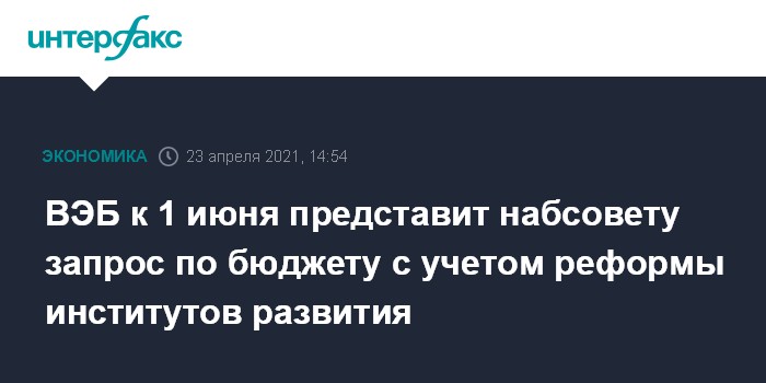 ВЭБ к 1 июня представит набсовету запрос по бюджету с учетом реформы институтов развития