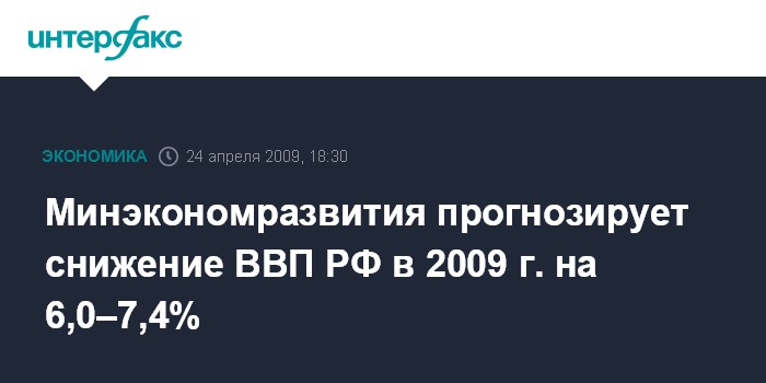 Минэкономразвития прогнозирует снижение ВВП РФ в 2009 г. на 6,0–7,4%