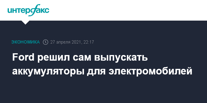 Москва. 27 апреля. INTERFAX.RU - Американский автопроизводитель Ford Motor Co. планирует запустить собственное производство литий-ионных аккумуляторов для электромобилей, пишет The Wall Street Journal.