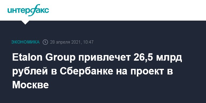 Etalon Group привлечет 26,5 млрд рублей в Сбербанке на проект в Москве