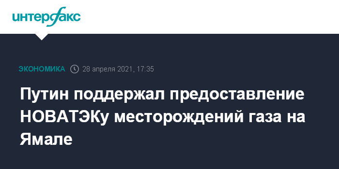 Москва. 28 апреля. INTERFAX.RU - Президент РФ Владимир Путин поддержал просьбу главы "НОВАТЭКа" Леонида Михельсона о предоставлении компании двух газовых месторождений федерального значения на полуострове Ямал - Нейтинское и Арктическое. С содержанием письма Михельсона на имя главы государства ознакомился "Интерфакс".