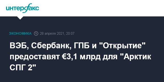 ВЭБ, Сбербанк, ГПБ и "Открытие" предоставят €3,1 млрд для "Арктик СПГ 2"