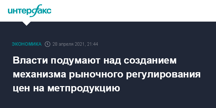 Москва. 28 апреля. INTERFAX.RU - Российские власти, обеспокоенные ростом цен на продукцию металлургической отрасли, подумают над созданием механизма их "рыночного регулирования".
