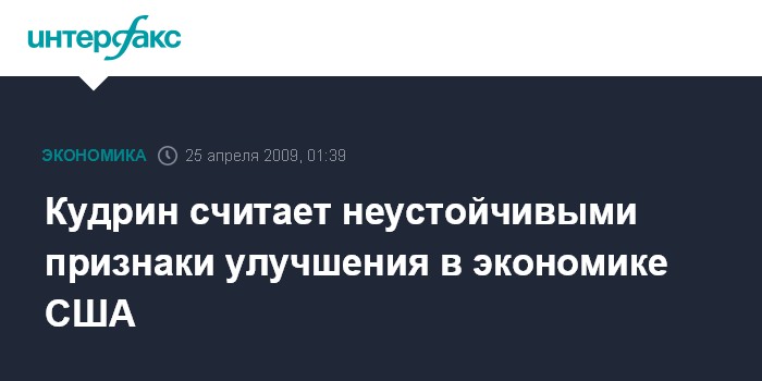 Вашингтон. 25 апреля. ИНТЕРФАКС-АФИ - Вице-премьер - министр финансов РФ Алексей Кудрин считает, что первые признаки улучшения в экономике США являются неустойчивыми, и есть ряд индикаторов, которые свидетельствуют о возможности продолжения кризиса.