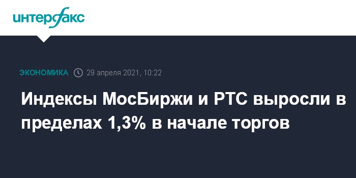 Индексы МосБиржи и РТС выросли в пределах 1,3% в начале торгов