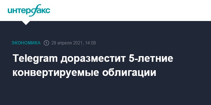 Москва. 29 апреля. INTERFAX.RU - Telegram Group Inc., развивающая мессенджер Telegram, доразместит пятилетние конвертируемые облигации. Об этом "Интерфаксу" сообщили несколько источников, получивших предложение об участии в сделке.