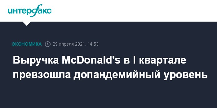 "Наши глобальные сопоставимые продажи и выручка за первый квартал 2021 года превысили уровень первого квартала 2019 года несмотря на то, что во многих частях мира идет новая волна пандемии и есть ограничения на работу ресторанов", - сказал главный исполнительный директор McDonald's Крис Кемпчински, слова которого приводятся в сообщении.