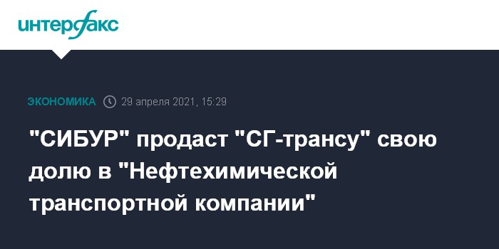 Москва. 29 апреля. INTERFAX.RU - "СИБУР" продаст железнодорожному оператору "СГ-транс" (СГТ) "на рыночных условиях" 50% в "Нефтехимической транспортной компании", перевозящей 9 млн тонн сжиженных углеводородных газов, следует из отчета "СИБУРа" по МСФО.