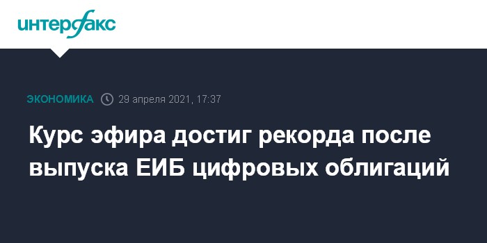 Курс эфира достиг рекорда после выпуска ЕИБ цифровых облигаций
