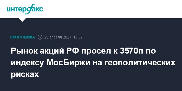 Рынок акций РФ просел к 3570п по индексу МосБиржи на геополитических рисках
