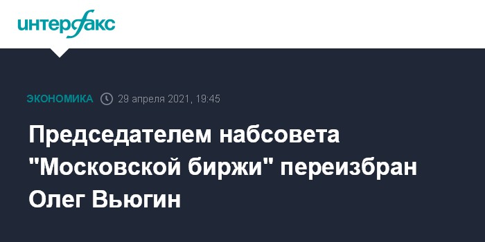 Председателем набсовета "Московской биржи" переизбран Олег Вьюгин