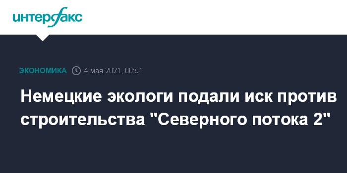 Москва. 4 мая. INTERFAX.RU - Немецкая неправительственная природоохранная организация "Союз охраны природы и биоразнообразия" (NABU) опротестовала в суде выдачу регулятором разрешения на строительство газопровода "Северный поток 2", сообщается на сайте NABU.