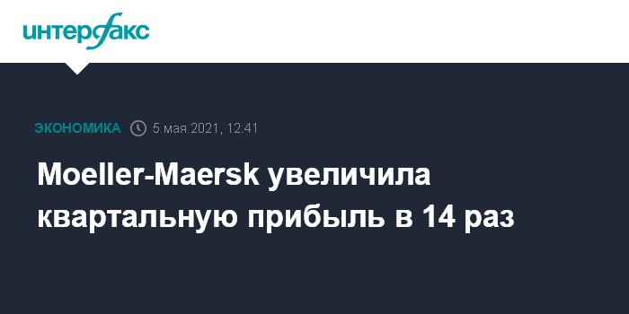 Москва. 5 мая. INTERFAX.RU - В I квартале 2021 года датская транспортно-логистическая компания A.P. Moeller-Maersk A/S увеличила чистую прибыль в 14 раз на фоне роста стоимости фрахта. Показатель составил $2,7 млрд против $197 млн годом ранее.